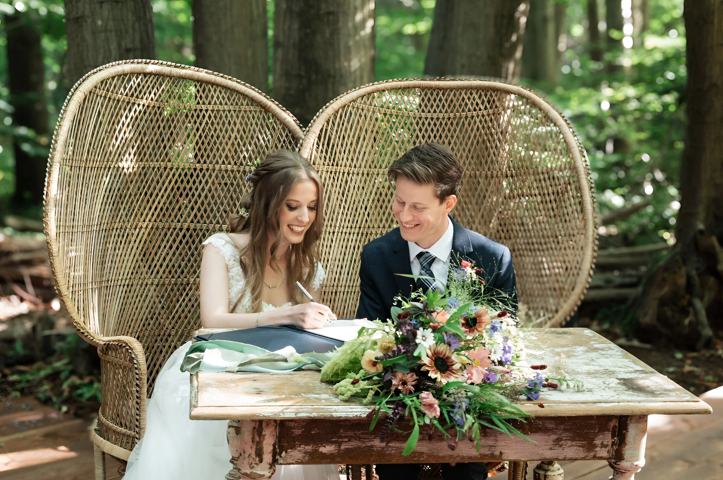 Bex and Josh dreamed of an outdoor September wedding in a beautiful woodland venue in Kent. To complement the rural venue and late summer season, we created designs using British grown wildflowers, with an abundance of texture and trailing details throughout.