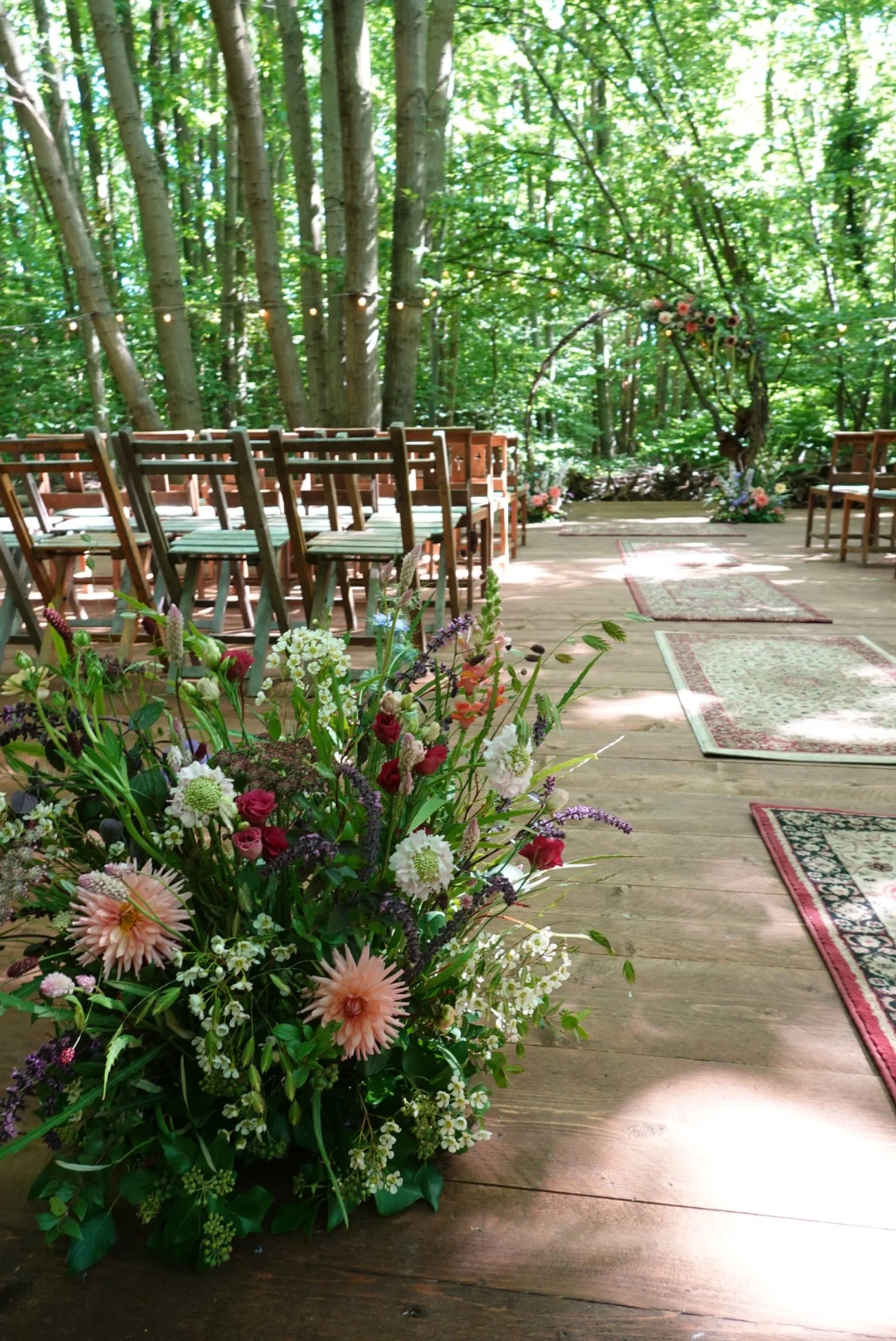 whimsical, bohemian floral design for a woodland wedding at The Dreys, Kent